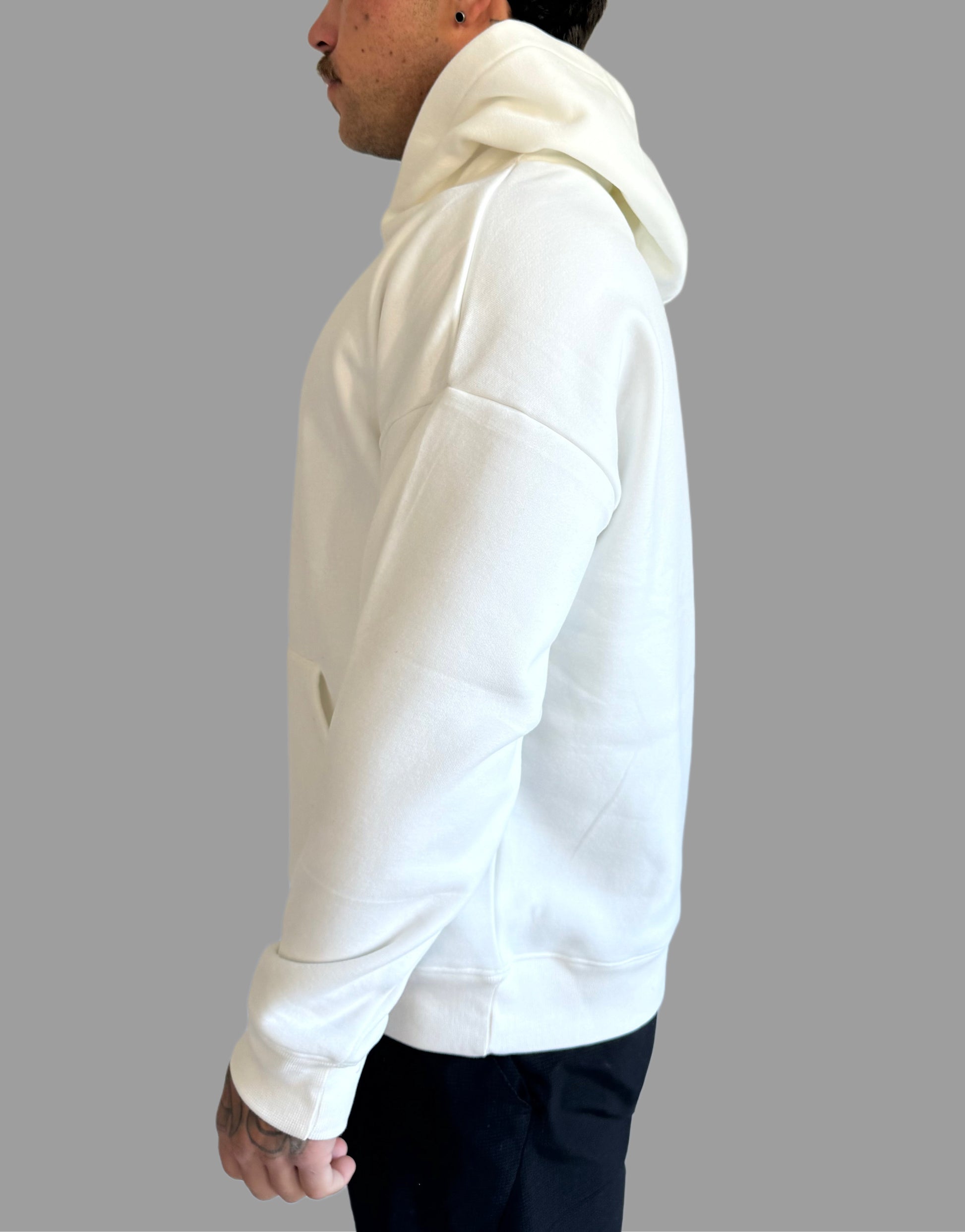 Clean lines, premium fabric, and an unbeatable fit. This minimalist hoodie is crafted from a rich cotton-modal blend with a silky-smooth interior for elevated comfort. Designed with subtle tonal branding and a structured silhouette, it’s the kind of hoodie you’ll want to wear everywhere—and can.